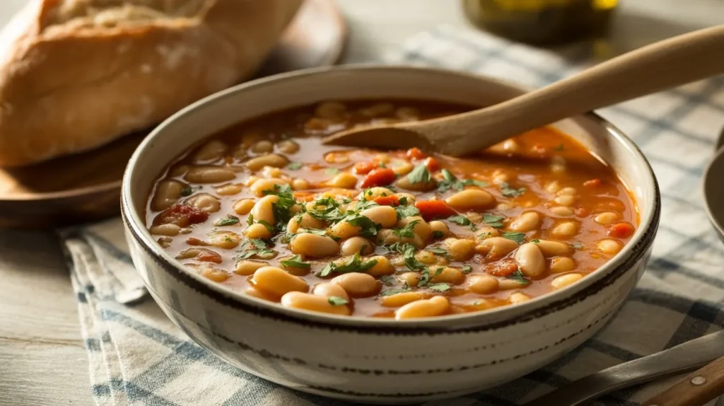 - Mash 1/3 of the beans against the pot with a spoon or use a food mill — this thickens the broth naturally to a stew-like consistency without cream. Why this matters: mashed beans create body and comfort.